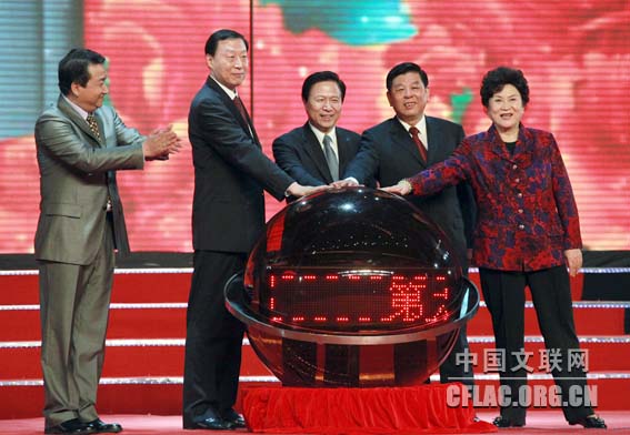 胡振民、梁保华、罗志军共同启动颁奖晚会。胡振民宣布颁奖晚会开幕。刘兰芳、杨新力分别致辞。