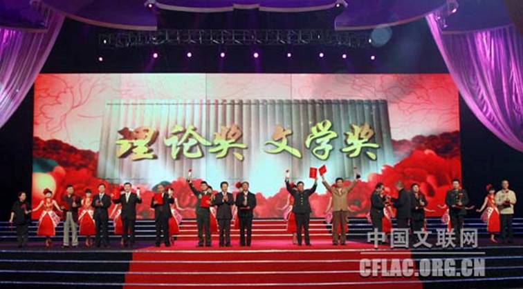 图为理论讲和文学奖获奖者接受颁奖。李晓东 摄