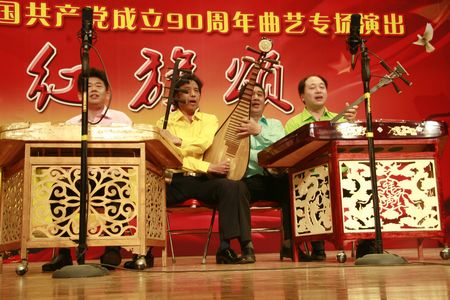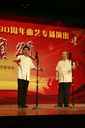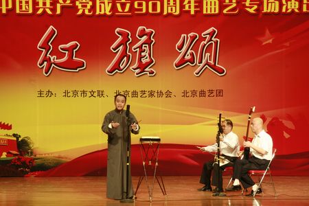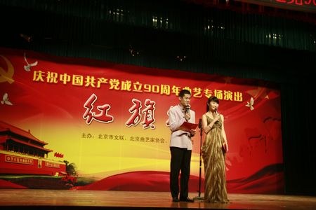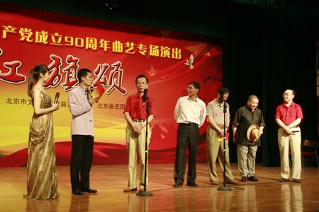 2011年6月27日下午由北京市文联、北京市曲艺家协会、北京市曲艺团联合主办的“庆祝建党90周年——红旗颂“曲艺专场演出在北京市文联小剧场隆重上演。京城老中青三代曲艺演员用自己独有的方式讴歌伟大的中国共产党,为党的90华诞献上一份厚礼。
