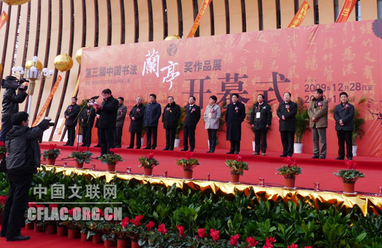 12月28日,第三届中国书法兰亭奖作品展暨尧山杯新人展开幕式在平顶山市博物馆隆重举行。李金华、王全书、覃志刚、孔玉芳、张程峰、靳绥东、路侃、张海、赵长青、申万胜、吴善璋、聂成文以及平顶山市市长李恩东,河南省文联党组书记吴长忠等出席开幕式。开幕式由戴志祺主持。