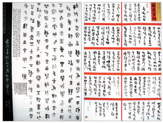 而随着展览效应的不断发展和深化,以及展览竞争的不断强化,青年书法家热衷于在作品形式上下功夫,在视觉感上做文章,也是书法创作的主要潮流。中国书协副主席聂成文说,形式的探索还要为作品的内容和主题服务,为了追求展厅效应而选择离奇的、“具有破坏力”的视觉效果是片面的,为创作而创作、为形式而形式,将会陷入制作化和装饰化的窠臼。对于展览、评奖的参与者而言,艺术追求的终极目的不是由于外在的形式突破而获得了哪些奖项,而是艺术的整体水平的提升。