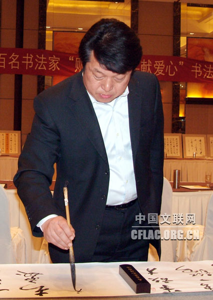 邓铜山向中国书协颁发了捐赠证书,并向中国书协和书法家们表示崇高的敬意和衷心的感谢。在捐赠仪式上,中国书协呼吁书法家继续以各种方式关注灾区,支援灾区,献上爱心。