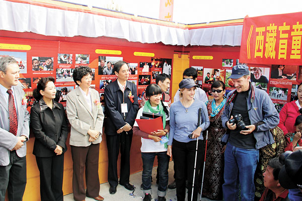 本届影展延续往届传统,在主展览外,立足西藏设立10个分展览。其中,以曾获得“感动中国十大人物”之一的德国盲人志愿者萨布利亚和她在西藏创办的盲童学校为主要内容的展览尤为引人注目。盲校成立10多年来,在摄影人的持续关注和影像作品的感染下,西藏的盲童教育受到越来越多社会各界人士的关心与关爱。当天由江苏法尔胜泓昇集团和西藏自治区文联共同主持的《西藏盲童之光》图文书献爱心义捐仪式上,集纳400多幅摄影作品的图文书《西藏盲童之光》义卖所得28万元捐赠给盲童学校,以让更多人了解西藏盲童的学习和生活,让更多人关爱西藏盲童的健康成长。