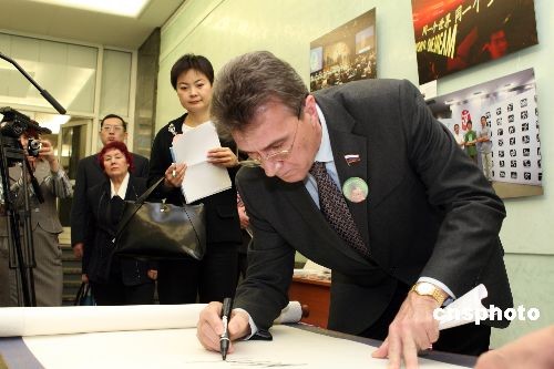 12月1日,《从莫斯科到北京——第29届奥运摄影展》特别展在俄罗斯国家杜马(议会下院)举行。中俄来宾饶有兴趣地参观了摄影展,重温北京奥运的精彩瞬间,并签名留念。 中新社发 田冰 摄