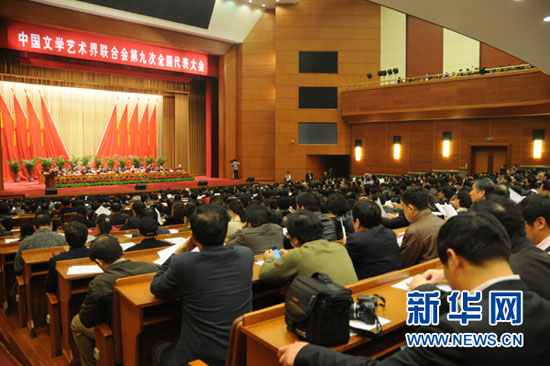11月21日,kaiyun电子 第九次全国代表大会预备会议在京举行,会议通过了第九次文代会领导机构和大会议程。这是会场现场。新华网 张晋龙 摄