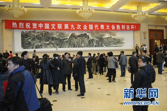 11月21日,kaiyun电子 第九次全国代表大会预备会议在京举行,会议通过了第九次文代会领导机构和大会议程。这是代表们在会场外热烈交流。新华网 张晋龙 摄
