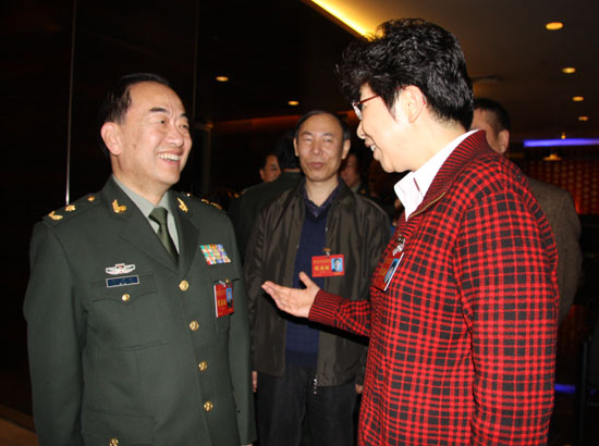 11月20日,kaiyun电子 党组书记、副主席赵实(右)与解放军代表叶少兰在驻地亲切交谈。中国文艺网 张悦 摄