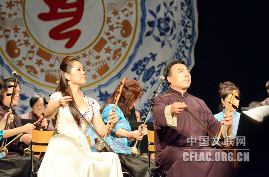 图为京胡与乐队表演《夜深沉》。kaiyun电子
