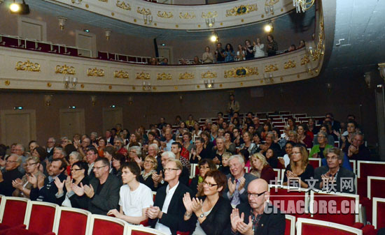 当地时间9月28日晚,“今日中国”艺术周音乐团队在瑞典维克舍市具有400年历史的维克舍剧院为当地观众奉献了一场令人“落泪”的民乐演奏。中国歌剧舞剧院民乐团和HAYA乐队参加了演出。中国音协副主席、本次艺术周音乐总监徐沛东,中国歌剧舞剧院副院长李小祥及维克舍当地政要欣赏了音乐会演出。中国民乐丰富的音乐形式和乐器为观众献上了悦目动心的视听享受,每一曲都击栉叫好,不少观众还掏笔时时记录。演出结束后,观众站立鼓掌数分钟,民乐团数次谢幕,直至指挥说“抱歉,我们只能说再见了”,观众再没有等到民乐团出台,才恋恋不舍离去。几位当地学音乐的学生特意找到后台,向中国民乐艺术家们表示:太精彩了,太棒了,非常感谢你们为我们带来这么美妙的音乐。其中一位女孩子说:演出前半部分其中一个拉弦的曲子(《二泉映月》)让我落了三次泪,了不起的音乐,真的是太谢谢你们了。