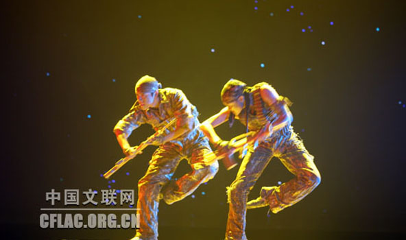 6月18日,中国文学艺术界纪念建党90周年主题系列演出之一“闪闪的红星——红色经典舞蹈晚会”在京举行。图为青年舞蹈家齐奇、张旸表演舞蹈《士兵兄弟》。