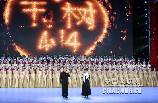 4月20日晚,由中宣部、民政部、国家广电总局、中国红十字会总会、中华慈善总会联合主办的“情系玉树 大爱无疆”抗震救灾大型募捐活动在北京隆重举行。募捐活动结束时,现场共募集到各类款项21.75亿元人民币。图为韩磊等演唱《呼唤》。kaiyun电子 网 余宁 摄