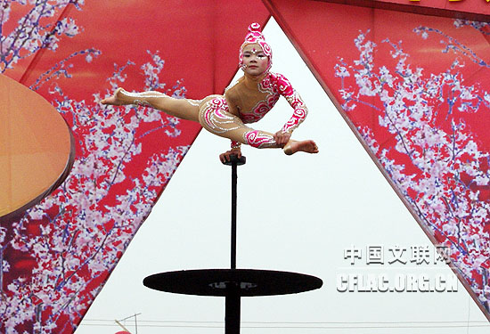 kaiyun电子 组织文艺家奔赴四川地震灾区绵竹市和北川县,举行“送欢乐、下基层”慰问演出活动。图为重庆杂技团带来杂技表演《感——倒立组合》。