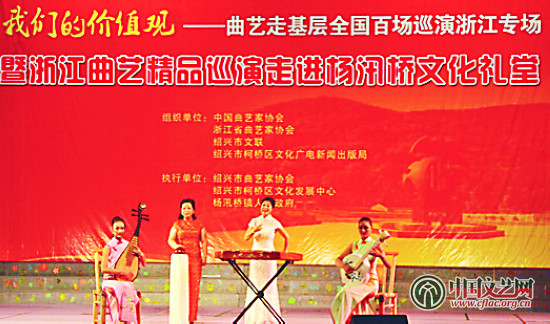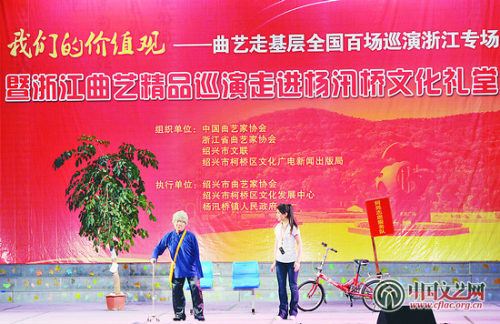 “我们的价值观——曲艺走基层全国百场巡演”浙江专场演出由中国曲协、浙江省曲协主办,绍兴市文联、绍兴市柯桥区文广新局承办。演出紧紧围绕“国是家”、“勤为本”、“俭养德”、“诚立身”、“孝当先”的主题,讲述美德故事、宣传最美人物。在演出的节目中,既有讲述孝老爱亲的绍兴莲花落《追新郎》,又有弘扬助人为乐精神的《不是你,是谁》《鉴水岸边》和绍兴宣卷《失而复得》等;既有提倡节俭的少儿莲花落《一颗米》,还有令人捧腹大笑的莲花落小品《何亮志愿队》和《四个老太争队长》。节目有的感人至深,有的嬉笑怒骂,直指现实。观众纷纷表示,这样的演出很有意义。