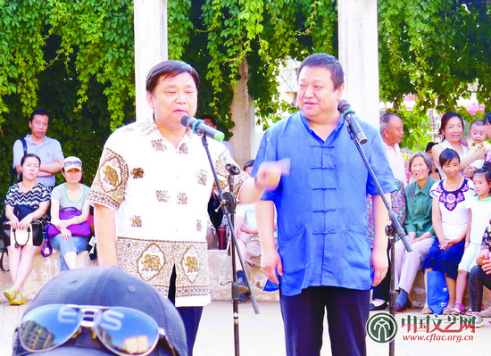 7月16日,山西省太原市小井峪街道三益社区干打垒小区里掌声笑声不断。下午5点多钟,在干打垒小区可以容纳几百人的小广场上,烈日尚在灼烤着地面,百余名小区观众已将演员团团围定。当天,由山西省委宣传部、省文明办、省文联主办,山西省曲协、太原市文联、太原市群众艺术馆承办的“我们的价值观——曲艺走基层全国百场巡演”山西专场的首场演出在这里举行。