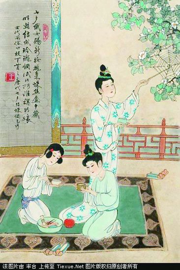 ◎ 七夕之情人节恰是为惩罚织女因爱情耽误织事才有的节日。不光牛郎追逐织女的故事传了下去,织事的重要性也一再被谨记。