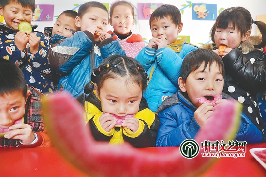 2月4日是二十四节气中的“立春”,民间有在立春时节吃萝卜、吃春饼“咬春”的习俗。图为2月3日江苏省东海县一家幼儿园,小朋友在吃萝卜“咬春”。