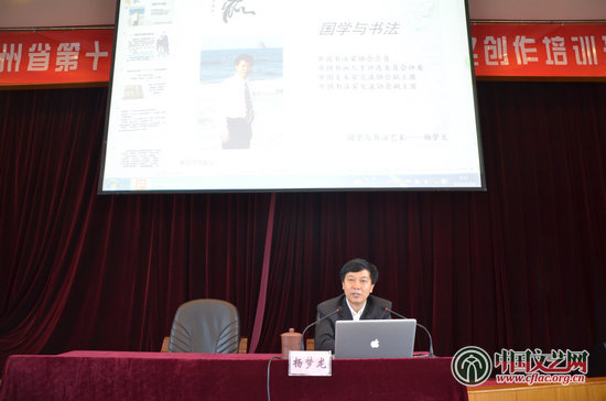 书法培训课上,杨梦龙以题目《国学与书法》为书法爱好者们精彩授课,他讲述了五个方面的书法知识:一是国学与书法的关系;二是中国书法的由来和种类;三是中国书法历史上的重点人物;四是如何看待中国书法艺术;五是如何欣赏书画作品。杨梦龙还向书画爱好者介绍了部分自己的书画作品,并与大家进行交流。杨梦龙的精彩授课吸引了在场的听课者,大家都认真听课,这些来自全省各企业的书法爱好者十分积极,连教室过道上也挤满了听课的学生。来自贵州省地矿局的书法爱好者说:“省文联专门为我们企业书法爱好者举办这样的培训班,机会难得,我们要珍惜这样的机会,把文艺的精神和文艺的美带到我们的工作中去”。