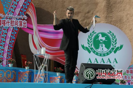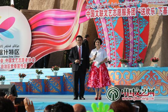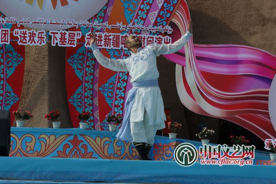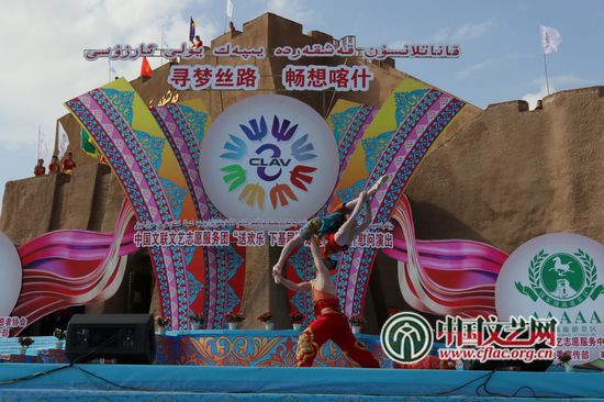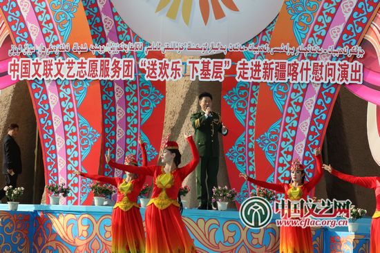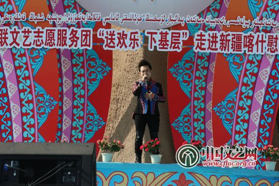 kaiyun电子 文艺志愿服务团“送欢乐下基层”走进新疆喀什慰问演出现场 中国文艺网 苏锐 摄