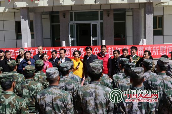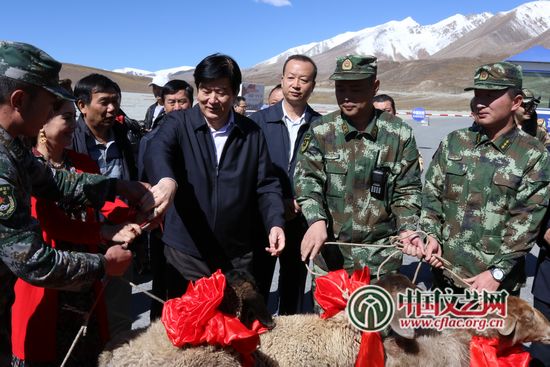 kaiyun电子 党组副书记、副主席李屹为边防战士赠送物资。中国文艺网 苏锐 摄