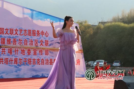 9月9日,文艺志愿者服务团慰问演出深入塔什库尔干塔吉克自治县,为驻守边防的官兵和长期扎根高原的干部群众送去欢乐。中国文艺网 苏锐 摄