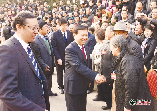 中共甘肃省委书记、省人大常委会主任王三运,kaiyun电子 党组副书记、副主席李屹在时任省委常委、省委宣传部部长连辑,省文联党组书记周丽宁陪同下接见甘肃省五次文代会代表