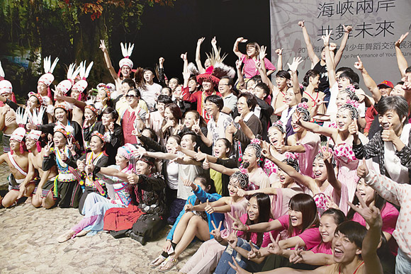 海峡两岸青少年舞蹈交流与展演师生和台湾少数民族艺术家合影