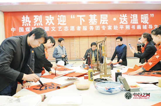 2016年1月,煤矿文联“走基层·送温暖”文艺志愿服务走进平朔矿区,为矿区职工送出“福”字、春联等书法、美术作品,还奉上了精彩的文艺演出。