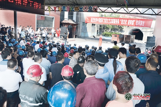 2015年5月23日,中国煤矿文联文艺志愿者服务队赴山西阳泉煤业集团进行文艺志愿服务活动。图为文艺演出现场