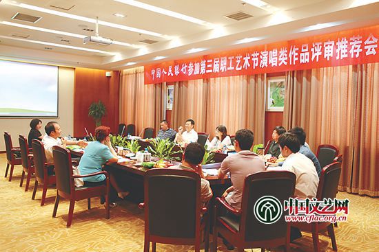 2012年,中国人民银行参加第三届职工艺术节演唱类作品评审推荐会现场