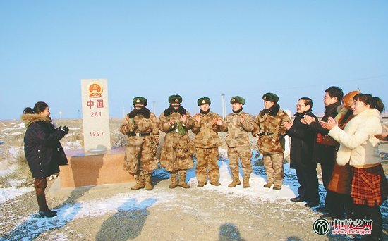 2011年1月9日,新疆生产建设兵团文联组织文艺家到阿拉山口在国门281界碑前为哨兵献歌
