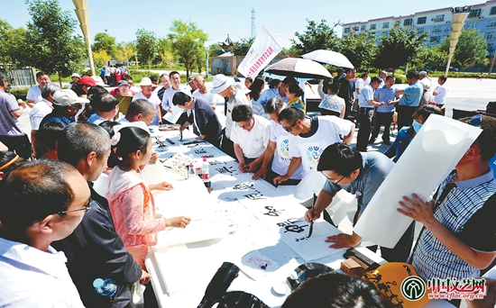 2015年5月,新疆生产建设兵团书法家在十三师团场现场创作