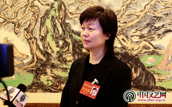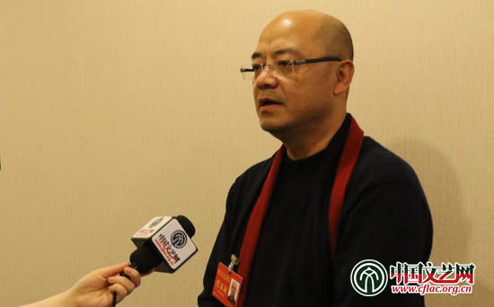第十次全国文代会代表、中国美协理事、天津美术学院油画系教授于小冬在第十次全国文代会现场接受采访