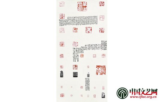 本次展览,集中体现了书法篆刻院研究员队伍近一年来艺术探索的轨迹、体现了他们的艺术状态,一共展出作品200余幅。总的来说,展览作品在坚持书法篆刻的本体性的同时,探索书法篆刻与美术的相互作用与影响,探索书法篆刻的多元化和当代性。这些作品深入研究传统,在传统中熔铸了大气磅礴的时代精神,以丰沛的才情、浑厚的格调,抒写出时代的旋律。骨子里流淌着的是时代的使命感与责任感,恢弘着传统的精意,追寻着自己的书法“中国梦”,为书法盛世的到来,贡献着自己的力量。