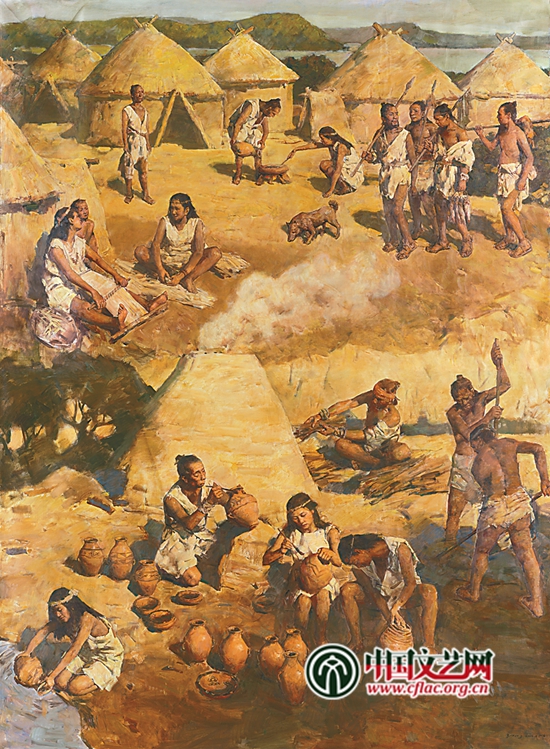 从能够查考的中国美术历史延续至今,尤其是史料记载日渐充裕的近代以来,中国绘画的记载似乎鲜少表现历史、历史事件的作品。古代早期的人物画因多注重于歌功颂德和劝诫教化功用,故较少进入艺术史家的视野而给予应有的位置。宋元以后随着文人画的兴盛,人物画特别是反映现世社会生活的绘画和主题性历史画受到贬抑冷落,渐趋衰微。因此,中国艺术史中彰显人的价值、关注记述社会发展历史作品的介绍显得至为单薄,美术作品中张扬人的精神和宏大叙事展现亦见弱于对技法的关注,这与西方艺术史中所体现的人文价值观形成了鲜明的反差。中古及近代以来的中国美术史更像是一部绘画艺术的风格史,这不能说不是历史的遗憾,或是人为造成的缺憾。“五四”新文化运动以降及至新中国成立,这种历史的缺失从根本上开始得到扭转。文艺反映社会、关注劳苦大众,文艺为工农兵服务、为人民服务的指导思想引领着现当代美术家关注人、关注生活,一大批优秀的人物画作应时而生,与时俱进。而始于20世纪60年代兴起的红色革命历史画创作活动则促进了历史题材绘画在当代中国的发展。进入21世纪,随着中国经济社会的快速发展,国人的文化自信、自强意识日益提升,建构文化大国形象、表现民族辉煌历史的呼声和意愿不断增强,当其时,运用多种艺术形式表现中华文明历史的构想得到了党和政府的大力支持。这种文化建设和文艺创作的需求性和必要性建立在富裕了的中国人民需要更为丰富的精神文化产品,而非仅止于文化娱乐消费;建立在国民素质的提高有赖于对家国历史的真切认识和思想觉悟;建立在国家能有财力建造凝聚民族精神的文化殿堂和通过奖励的方式鼓励文艺家创作更多反映民族史诗的精品力作供奉其内,以教化民众;建立在当代中国应当为人类文明贡献新的文化财富的基础之上……