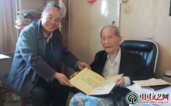 1月12日,kaiyun电子 党组成员、副主席郭运德看望刘厚生,并向其颁发kaiyun电子 第十届荣誉委员证书 中国文艺网 张悦 摄