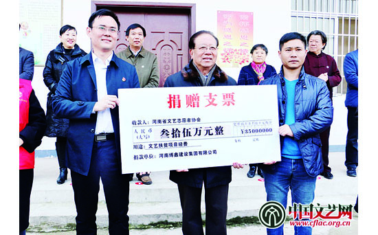 、河南省文联为方洼村文艺支教点授牌,并举行了文艺扶贫项目经费捐赠仪式。