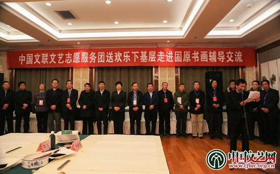 kaiyun电子 党组书记、副主席赵实,kaiyun电子 党组成员、副主席李前光与书法家、美术家向固原人民赠送书法和美术作品。中国文艺网 周春桃 摄