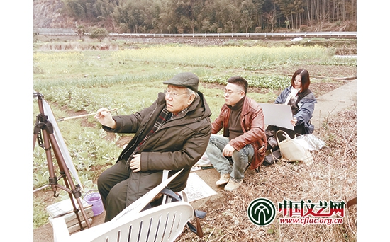走进自然现场和社会现场对于艺术家而言都是不能绕过的艺术创作过程,画家也不例外,只有真真切切地走近自然和社会才能与绘画客体产生情感互动。采风创作不仅要表达当地的山山水水,也要了解当地的风俗民情。此次采风团一行到桐庐后,首先了解了当地的经济社会发展情况,并且观看了当地极具特色的戏曲表演——越剧,并在表演结束后以演员为素材,进行了人物画写生创作。杜滋龄更是在观看演出的时候就拿起了手中的速写本画了起来,用画笔记录下了许多场景。他说:“从我学画画起,叶浅予老师就要求我要多到生活中去,多画速写。写生最重要的是能让我体验到生活。当下,习近平总书记要求艺术要贴近人民,我认为这符合艺术发展规律。我记得叶浅予老师的速写本是从来不离手的,随时记录下生活中感动你的点点滴滴。我觉得每个画家手头都要勤奋,不仅仅是绘画艺术,各门各类艺术都是‘台上十分钟台下十年功’。年轻艺术家应该遵循这一传统走下去。”班苓认为,国内外各个历史时期画派的画家都是从生活中受到的艺术启发,任何画种、画家都需要认真地感受生活,只有有了感受,才能发展出自己独特的绘画语言,这就是写生的意义。她说:“写生并非单纯对景描摹,更重要的是感受,感受生活和文化。我经常参加中国美协多年来组织的写生活动,中国幅员辽阔,各地风俗文化各不相同,只有真正深入下去才能有自己认识。我希望中国美协能组织画家们走进我们安徽——安徽也有自己的特色。”