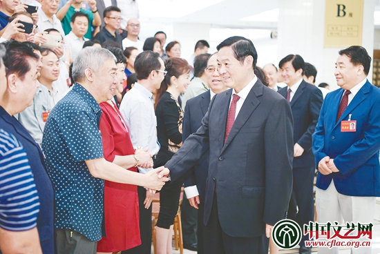 7月19日,中国曲艺家协会第八次全国代表大会在京开幕。中共中央政治局委员、中央书记处书记、中宣部部长刘奇葆亲切接见与会代表 新华社记者 张 领 摄