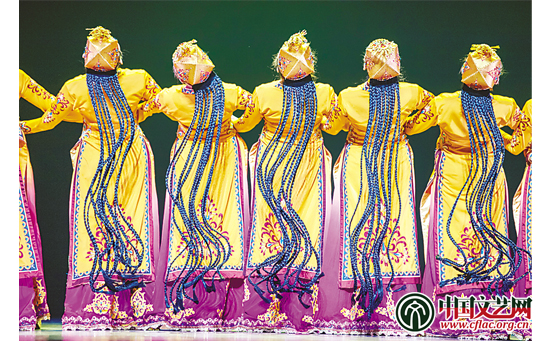一是作品的成熟度。新疆军区政治部文工团作品《长长的辫子》以维吾尔族姑娘长可及腿的长发辫子为视觉聚焦点,随着辫子的抖动不断升级,姑娘的端庄与高贵、无法抑制的自豪感和幸福感充满了整个舞台,民族气息浓郁。编导李维维说:“我之所以选择长发是因为它是一个习俗,头发越长越黑越多身体就越健康。我们在传统习俗中发现了蕴含维吾尔族姑娘引以为荣的自豪感和幸福感的细节,就抓住了它。长发可以表达端庄、高雅之美的宁静性情,长发的飞旋抖动更适合表达极其澎湃幸福满满的喜悦状态。”李维维认为,只有用满腔的热情和真诚的态度去拥抱自己的民族,才能找到民族文化最纯正的味道、习俗中最浓郁的东西。无疑,习俗里包含目光聚焦的经验,头发的抖动散发着节奏散发着气味。相反,在没吃透某个民族就去创作的情况下,一些编导不敢或不甘于只专注一点——深入地把民族味道表现出来,而想兼顾许多,自然在作品的情感浓度密度上就差了许多。成熟的作品勇于达到纯粹、极致,正如中国舞协主席冯双白说:“成熟度是‘荷花奖’评奖的一个重要依据,作品不只是动作层面的堆积,要有生命的意蕴。”