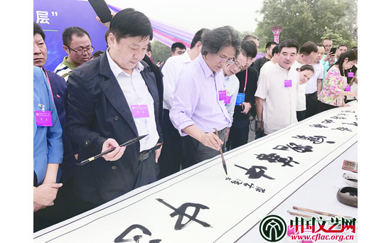 开幕式现场,中国书协主席苏士澍与河南省委宣传部副部长张曼如共同为“太极拳之源”揭匾。苏士澍、卢中南、龙开胜等书法家现场挥毫泼墨,为太极圣地创作了百米书法长卷,一幅幅气势雄浑的作品赢得了围观者的一致称赞。书法家们还为陈家沟地区的书院、太极拳学校等书写了数量众多的牌匾,为当地百姓带去最实实在在的礼物。