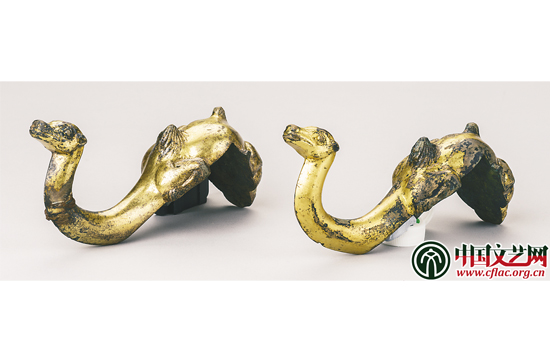 鎏金青铜骆驼形钮钟架构件(西汉)