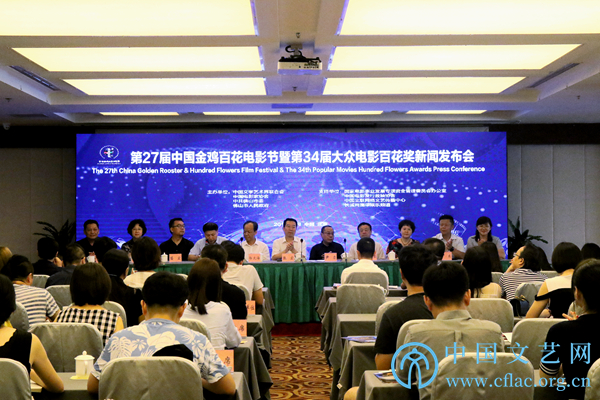 8月9日,第27届中国金鸡百花电影节暨第34届大众电影百花奖新闻发布会在京举行。图为发布会现场。中国文艺网 韩雪竹 摄