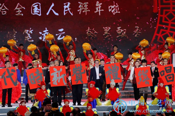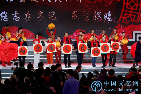 王陈晞、王源、周冬雨、黄圣依、何沐阳、孟广禄、牛群、瞿弦和表演新春献词。 中国文艺网 高晴摄
