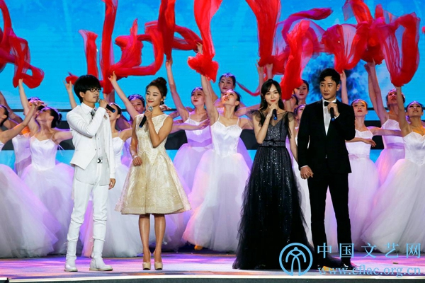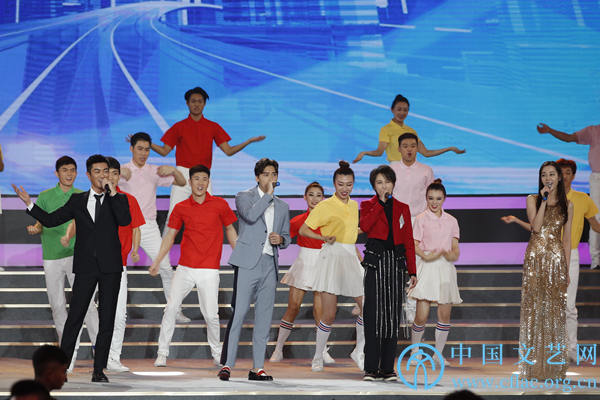 李易峰、迪丽热巴、杜江、蒋璐霞演唱歌曲《我的新时代》。 中国文艺网 高晴 摄