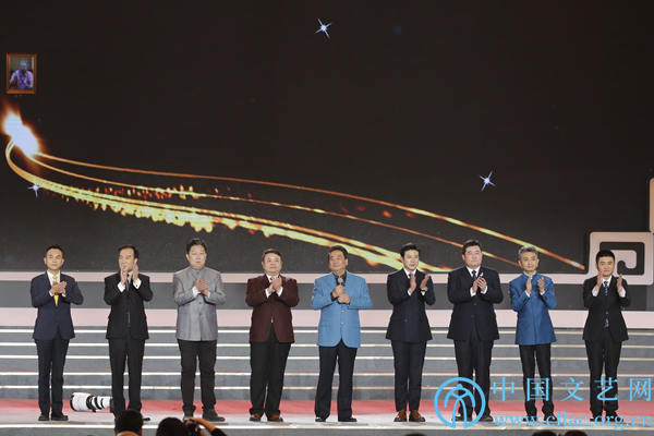 姜昆、周炜、戴志诚、苗阜、陈印泉、郑健、常亮、甄齐、高晓攀表演相声《用作品记录时代》。 中国文艺网 高晴 摄