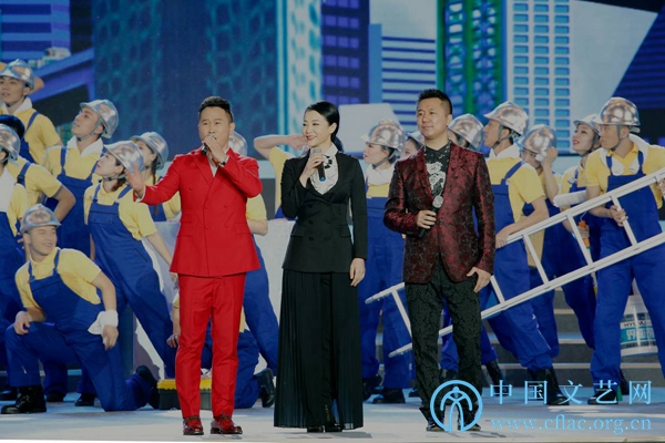 师鹏、韦嘉、金波演唱歌曲《自豪的建设者》。 中国文艺网 高晴 摄