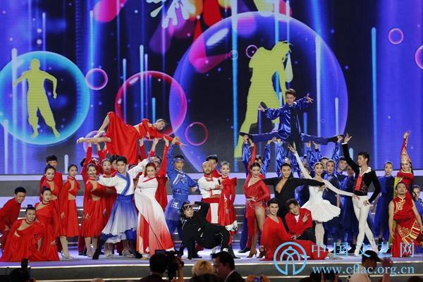 胡适、张娅姝、王帅、梁岱青、刘潇、涂白桦、韩宇、焦洋、王韵、拉巴扎西、马依热·艾买提江、李德戈景、田羊取中表演舞蹈《炫舞春天》。中国文艺网 高晴 摄
