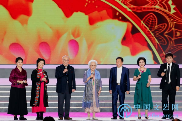 郭淑珍、刘秉义、姜嘉锵、邓玉华、耿莲凤、卞小贞、王洁实演唱歌曲《年轻的朋友来相会》。 中国文艺网 高晴 摄