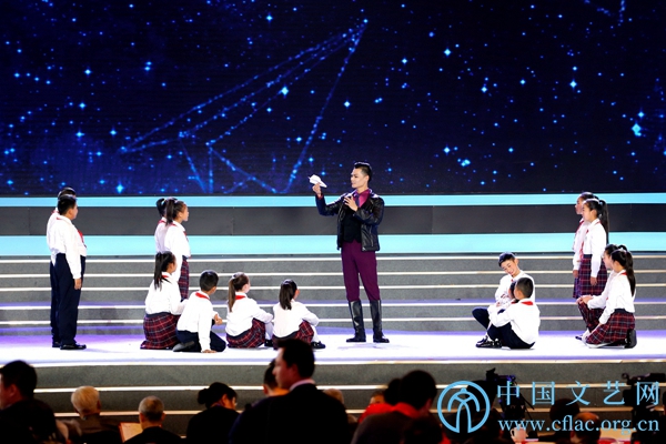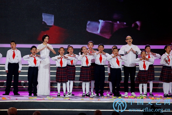 平安、佟丽娅、云南会泽驰宏小学学生演唱歌曲《姐姐》。中国文艺网 高晴 摄